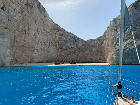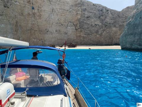 Gestern erkundeten wir die Westküste von Zakynthos, vorbei an den Blue Caves, ein kleiner Abstecher zum Shipwreck Beach (Ankern und Betreten des Strandes ist hier allerdings verboten)