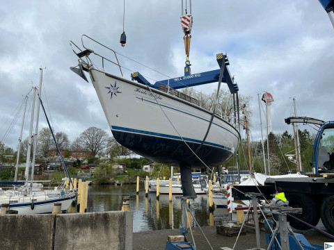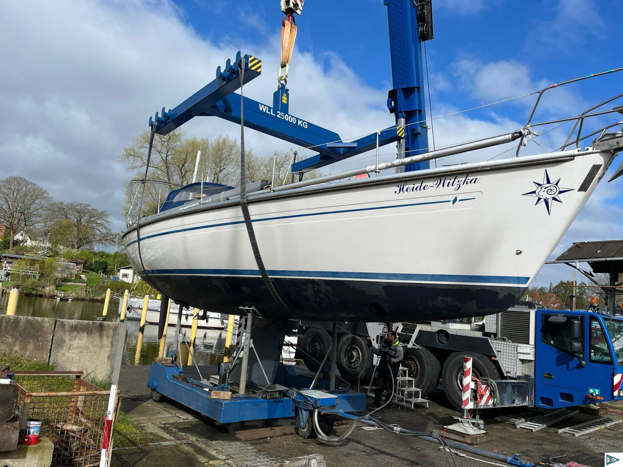 Die Heide Witzka schwimmt und sieht wie ein Segelschiff aus. Jetzt noch der Frühjahrsputz und dann geht's am Sonntag nach Heiligenhafen.