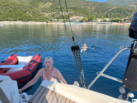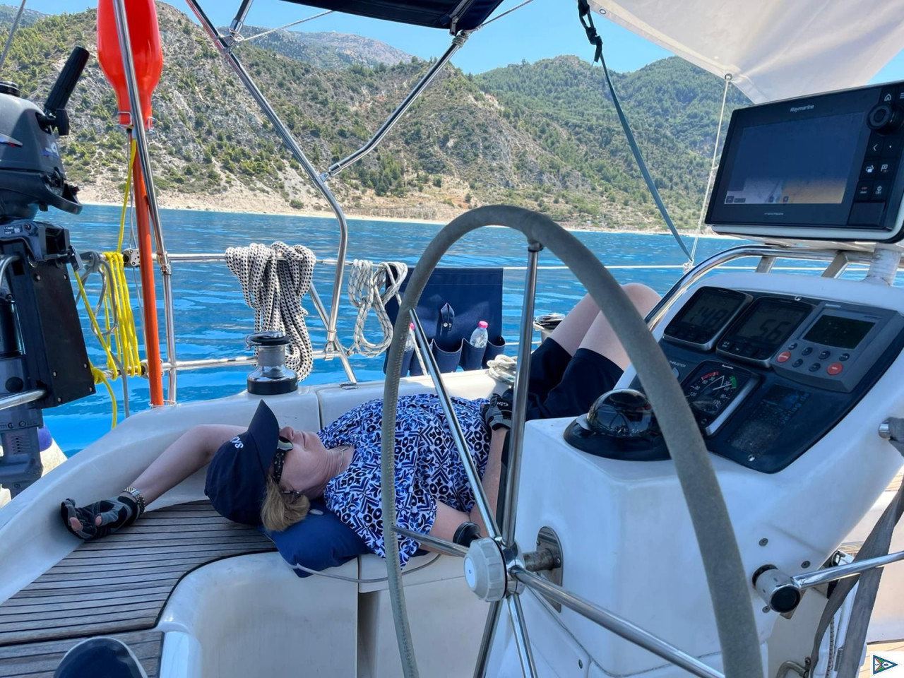 Nach einem längeren Tag (44 sm), hatten wir eine ruhige Nacht vor Anker. Nach dem Frühstück gibt es dann ein erfrischendes Bad. Heute wird es einen ganz entspannten Tag geben, wahrscheinlich wieder überwiegend mit Diesel-Genua. Ich denke, ich beschäftige mich heute aus gegebenem Anlass mit der Ankerwinsch.
