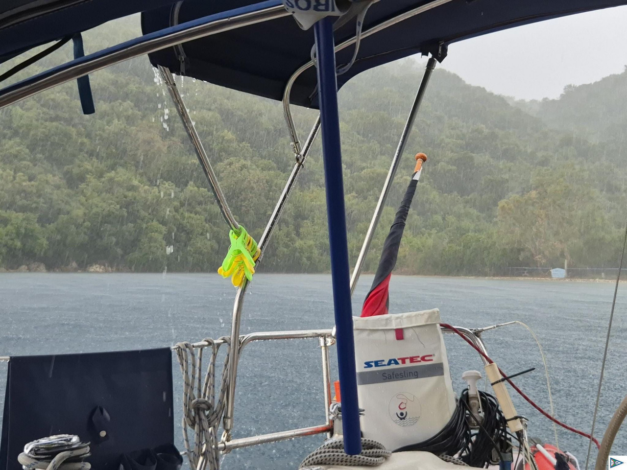 Hallo Carlo wir haben die Nacht überstanden zweimal mussten wir den Anker heben und neu legen es war eine spannende Nacht es hat ordentlich gegossen und es gießt noch wir bleiben heute hier morgen fahren wir dann nach niedri