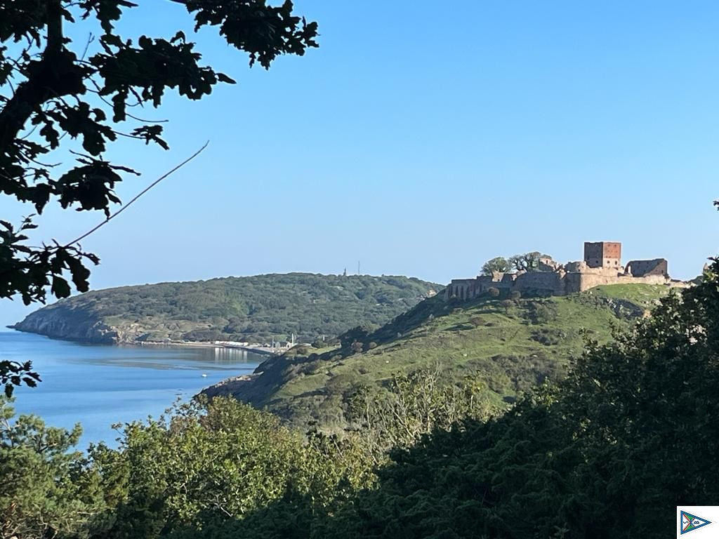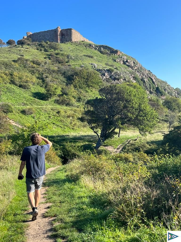 Hallo Karlo, die Heide Witzka ist auf dem Weg zum nächsten Übergabeort in Klintholm. Bevor wir am Mittwoch Morgen die Leinen losgeworfen haben, sind wir noch hoch auf die Festung Hammerhus gestiegen, eine sehr schöne kurze Wanderung von Vang aus und eine super Sicht von dort oben! 👍🏼