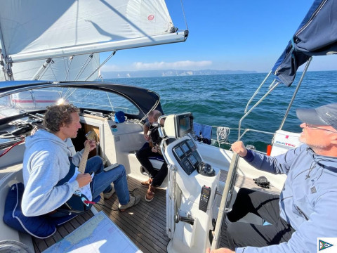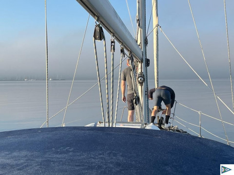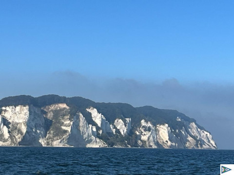 Am heutigen Morgen sehen wir zu, dass wir die Brücke bereits früh passieren und „suchen" südlich der Kanalausfahrt unseren Weg durch die dichte Nebelbank, die Schonens Küste und den Øresund fest im Griff hat. Die dänischen Gewässer haben uns bereits wieder, Sonne und Wind haben den Nebel vertrieben und wir segeln entlang von Mons Klint unserer Etappenankunft entgegen.