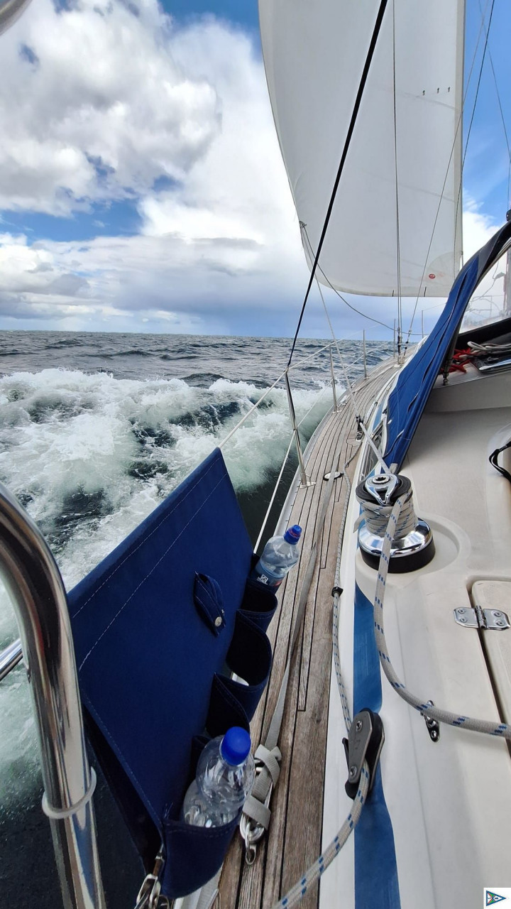 Moin Karlo, heute war wieder alles dabei. Erst Regen, wenig Wind,dann wieder Regen und Wind um 5-6Bft. In der "Surf" mit bis zu 10kn. Pünktlich zum Anlegen in Heiha schien dann doch noch die Sonne. Wir liegen jetzt vor Kopf an Steg 4. Tisch ist im Nordpol bestellt. Mal schauen wo wir morgen landen. Die Aalkate muss noch ein wenig auf uns warten. Gruß von der Crew