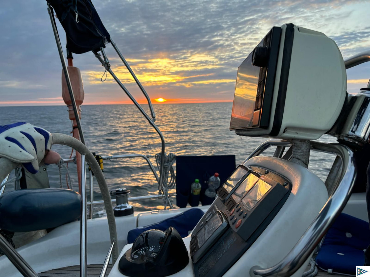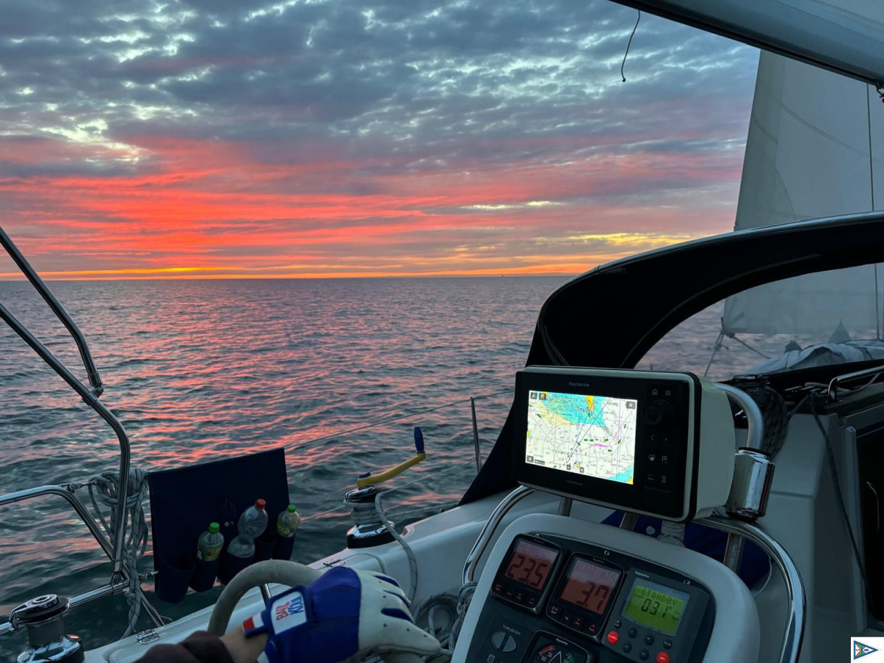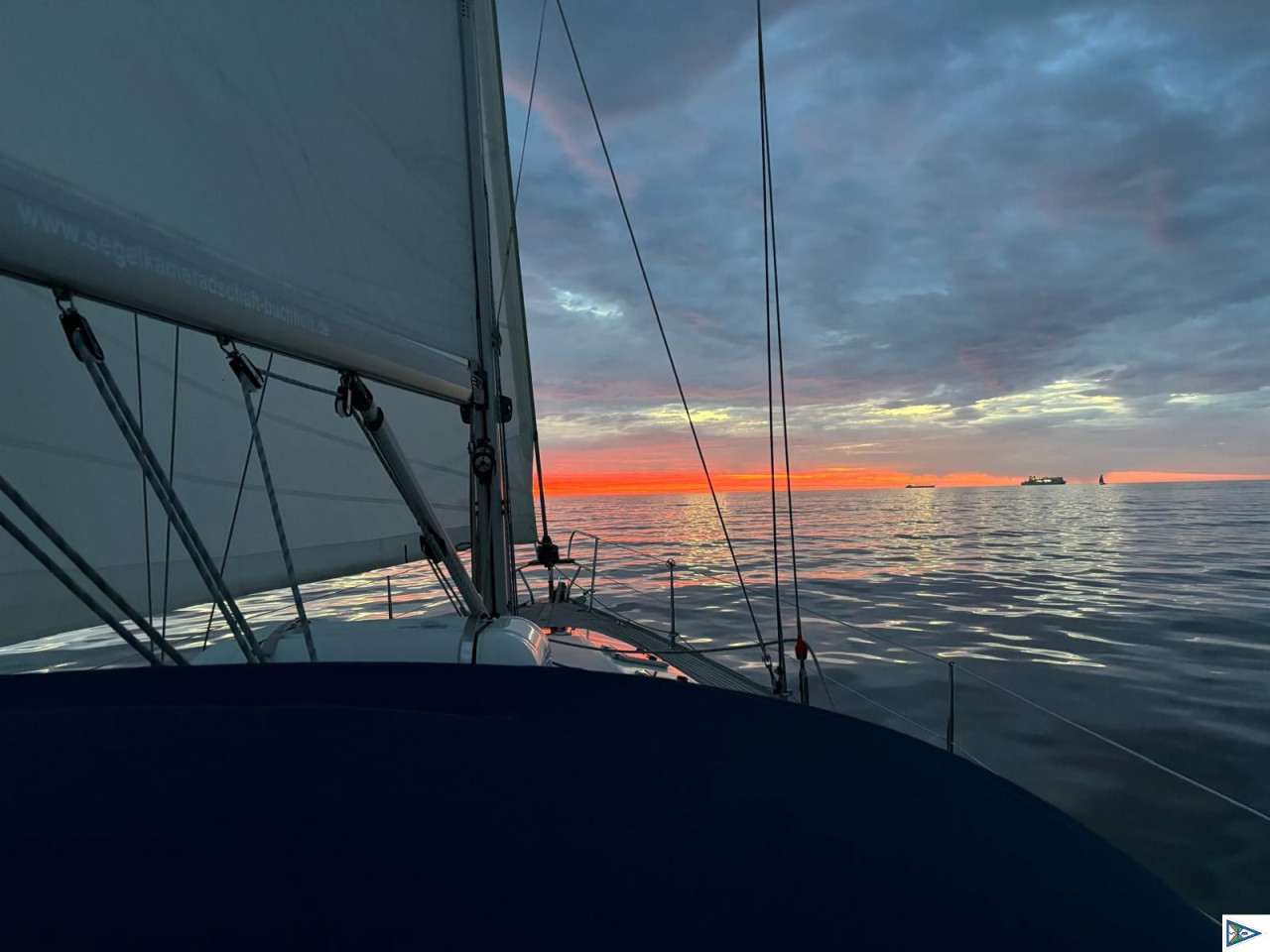 Kurzer Zwischenbericht nach den ersten 24 Stunden: sehr flaue Nacht mit erheblich Traffic am Verkehrstrennungsgebiet hat uns gezwungen die nördliche Route zu nehmen.