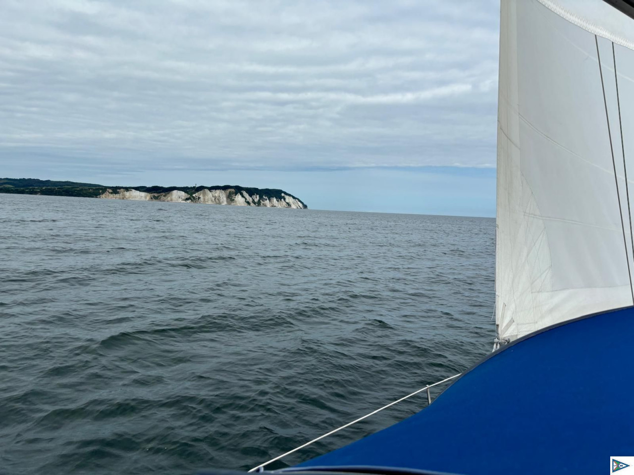 Gerade Klintholm passiert Richtung schwedische Küste. Beste Stimmung an Bord, trotz derzeit noch schwacher Platzierung.