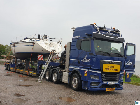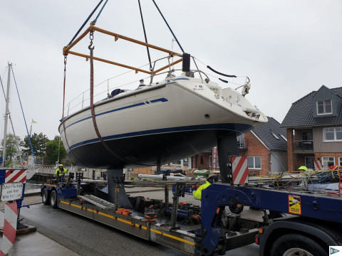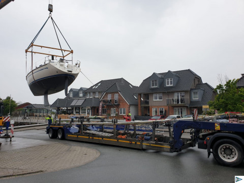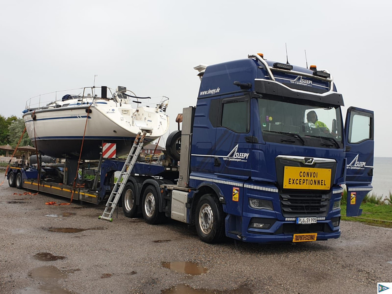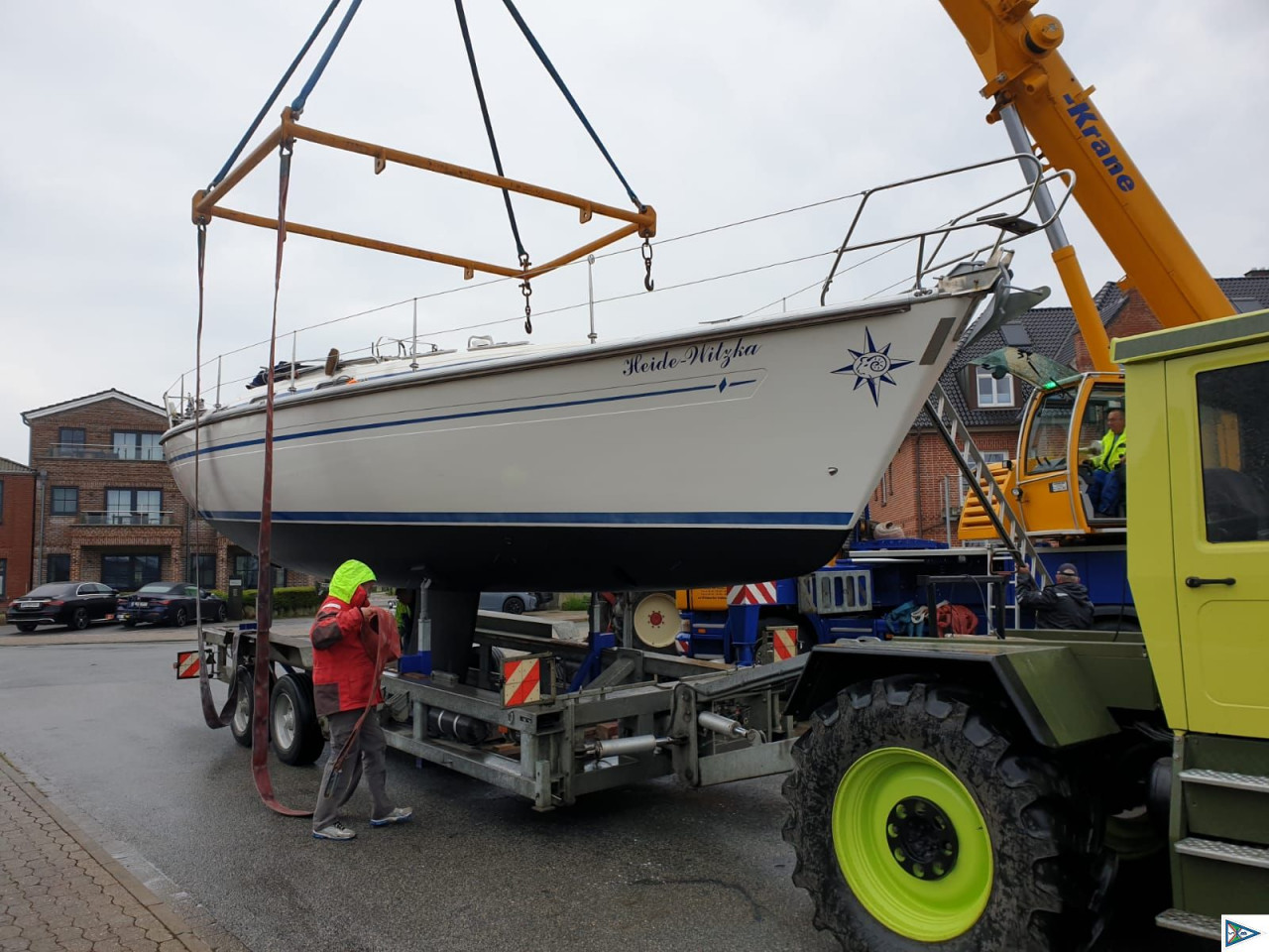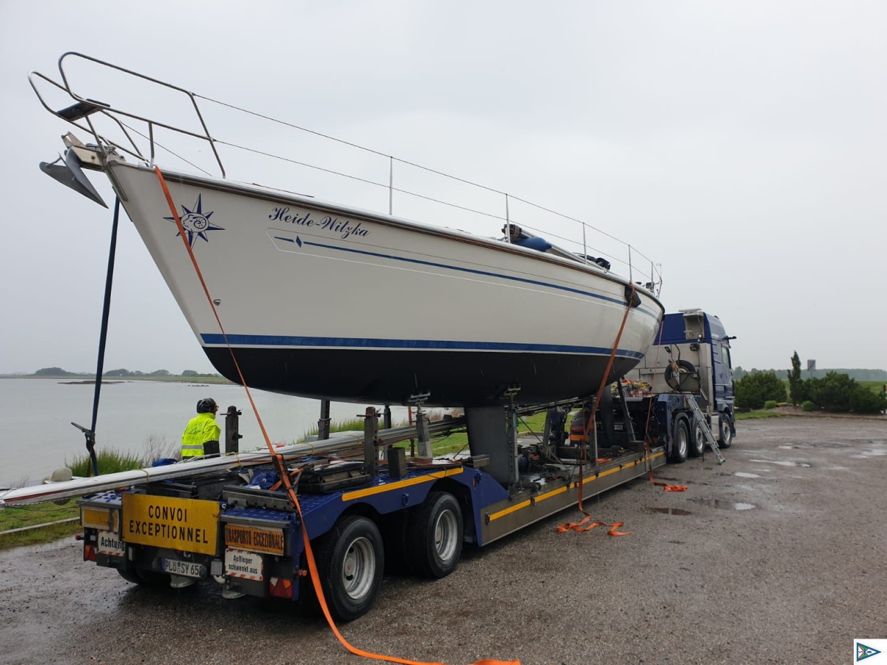 Heute Morgen ist die "HEIDE-WITZKA", selbstverständlich unter entsprechender Aufsicht von Bernd und Michael, in der Werft auf Fehmarn auf einen LKW der Firma SLEEPY-Yachttransport verladen worden.