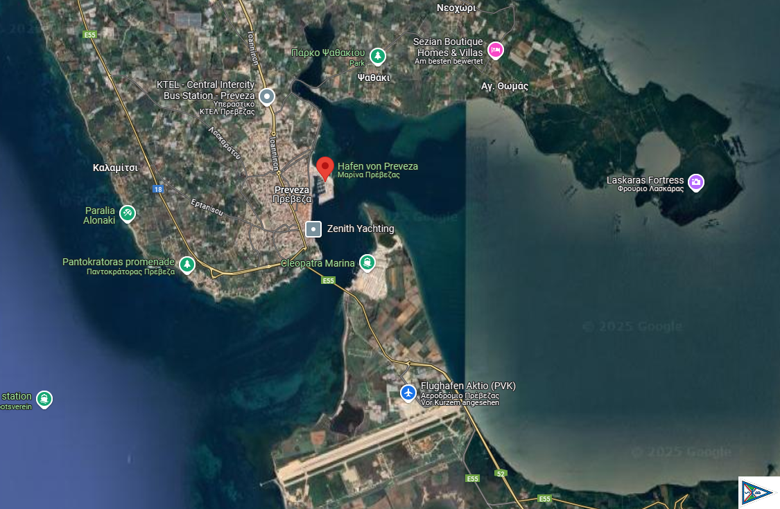 Die HEIDE-WITZKA wird die Sommermonate im Ionischen Meer verbringen, als Basis wird die Marina Preveza genutzt. Diese befindet sich im Herzen des Ionischen Meeres nur 8 km vom Flughafen Aktio entfernt.