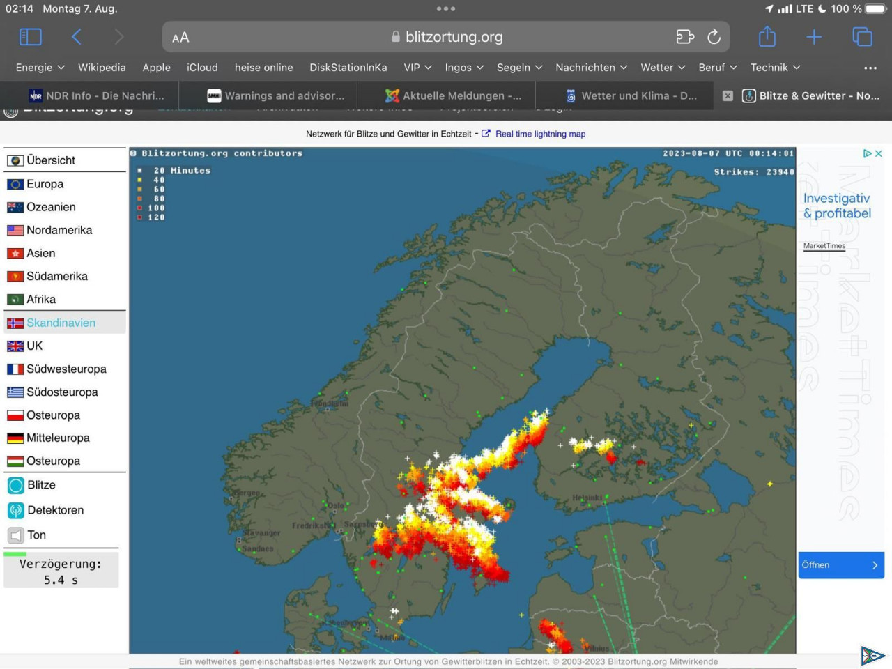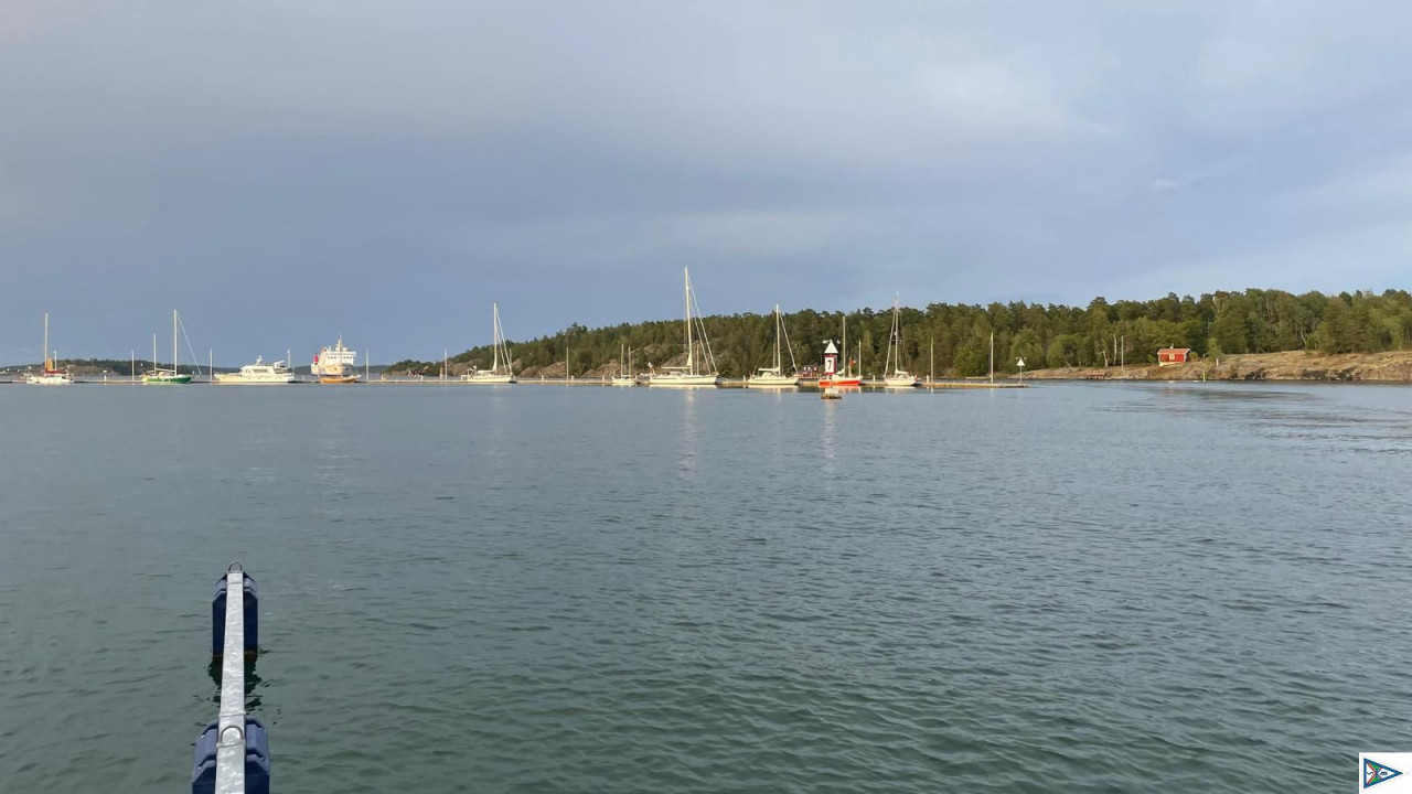 Dalarö war eine gute Entscheidung. Ruhiger Liegeplatz im Lee der Insel. Mehrfach Gewitter mit Schauerböen nachts.